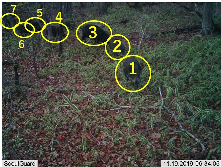 Q1.下の写真に写っているイノシシは何頭でしょうか??