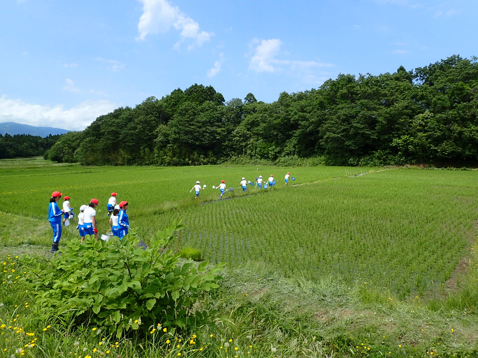 <トキのエサとなる水田の生きものを調査・学習する授業>