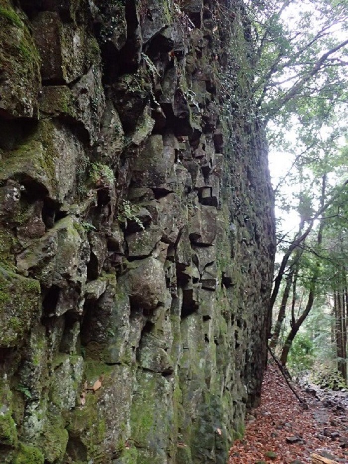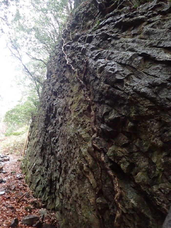 このコースの見所のひとつが、柱状節理の大岩壁です。