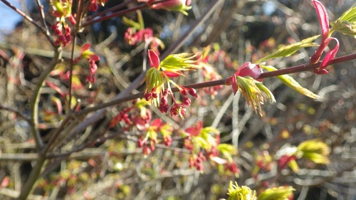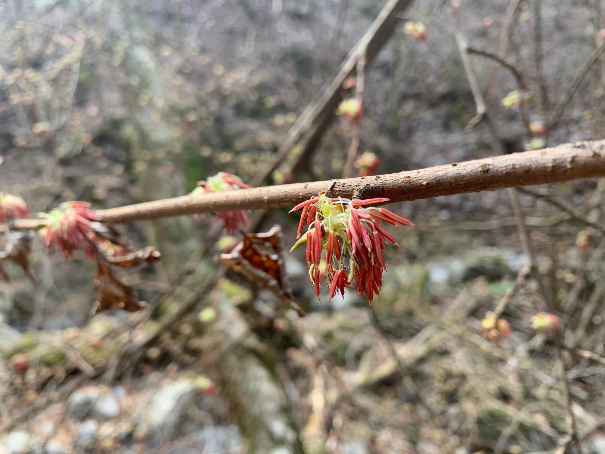 奥多摩では冬芽が芽吹き、開花があちこちで進んでいました。