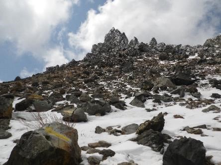 【山頂辺は荒々しく砕けた奇岩でいっぱい】