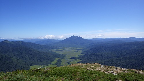 △燧ケ岳山頂から見た尾瀬ヶ原と至仏山