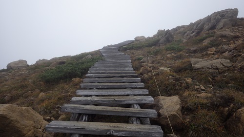 私が初めて登った際の印象は頂上付近が滑らかな標高なので、なかなかゴールが見えず階段の木道なので疲れてしまいまいした。