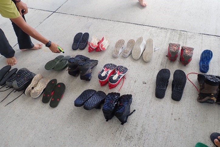 なので、現場に持って行く履物は毎回きれいに土や泥を洗い落とし、お酢をかけてから出発します。