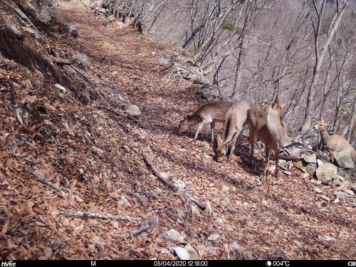 ▲日光から尾瀬方面へ移動するシカ(春の移動)