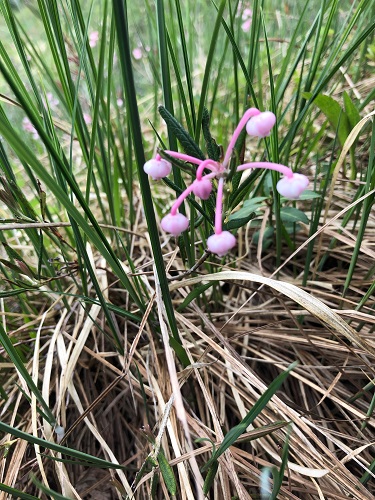 葉には毒があるためこのような花言葉がつけられているようです。ピンク色の花が下向きに可愛く咲いていますが、油断してはなりませんね。