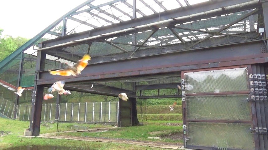 前回のソフトリリース方式による放鳥では、放鳥初日に1羽だけ順化ケージ内に残ってしまい、翌日まで延びてしまいました。
