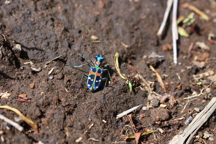 2㎝前後のセンチコガネ科、観察時期はハンミョウと同じのようです。