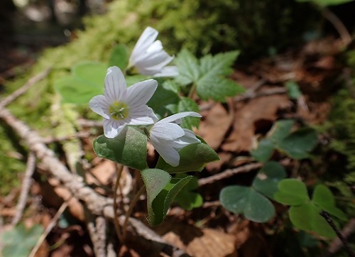 コミヤマカタバミは花びらに脈が帯び、人間の血管のように見えます。小葉は夜になると閉じて、睡眠運動をします。花びらに人間のような血管模様があって睡眠運動する。・・・勝手に親近感を感じています。ちょこんと足元に咲いていることが多いので、踏んでしまわないように気を付けなければなりません。