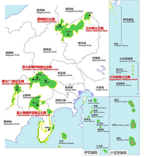 面積は35.752ヘクタールで、日本の国立公園としては広い方ではありません。関東管内の国立公園と比較してみると、わかりやすいですね。
