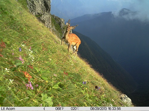 荒川岳東カール(標高2,920m付近)のセンサーカメラに写るニホンジカ