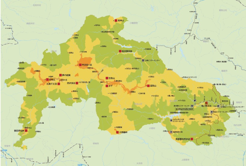 構成市町村:秩父市、小鹿野町、青梅市、日の出町、あきる野市、檜原村、奥多摩町、丹波山村、小菅村、甲州市、山梨市、甲府市、甲斐市、北杜市、川上村