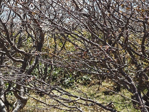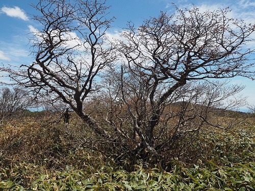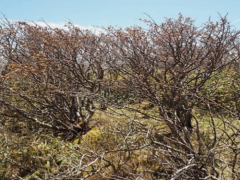 冬場の雪と強風のため、また火山性ガスのため、森林が成り立たないのだと理解されます。