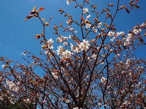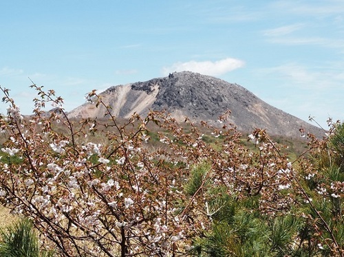 那須のシンボル「茶臼岳」(1915m)から南につながる頂上を日の出平(1786m)と言います。この日はミネザクラの開花にあわせて巡視しました。那須の山々の登りは、「つづら折り」と言うよりは直線的に登りあげる登山道が多く、意外にキツイところがあります。しかしキツイ坂の途中にも、癒やしはあります。