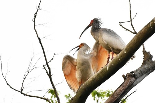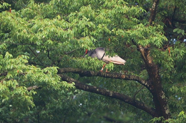 トキは人の暮らしに近いところで生活していますが、普段は人工物にはとまらず、休息する時も塒をとる時も、木にとまります。