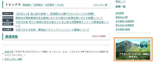 みなさんは関東地方環境事務所ホームページ(http://kanto.env.go.jp/index.html)のアクティブ・レンジャー日記のアイコンの写真をまじまじと見たことがありますか?