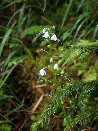 葉がシダのような形になっており、機織りの「オサ」に似ていることから「オサバグサ」と名付けられたようです。下向きではありますが、純白な可愛らしい花を付けます。あちこちで見られる花ですが、日本の固有種でとても貴重です。