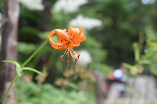 クルマユリは鮮やかなオレンジ色が特徴的です。鳳凰小屋の周辺で咲いていました。わたしたちが巡視に行ったその日に開花したようで、わたしたちのことを出迎えてくれたような気持ちで嬉しくなりました。