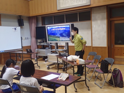 7月下旬に南アルプス市芦安小学校にて、3~6年生を対象に出前授業を行いました。芦安小学校では、総合的な学習の一環として、鳥獣による食害の学習に取り組んでおり、今回の出前授業では南アルプス市(旧芦安村)にある北岳などのニホンジカによる被害について金丸生態系保全等専門員が出前授業を行いました。今回はその様子をお伝えしたいと思います。