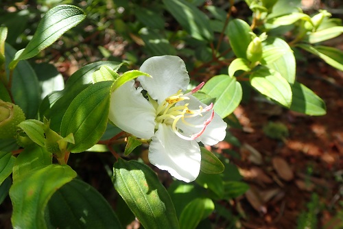 白い4枚の花びらが特徴的なこの花は、「ムニンノボタン」です。可憐な感じが可愛らしいですね。