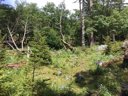 中盤を過ぎると、少し傾斜がきつくなって木々の密度が減り始めます。