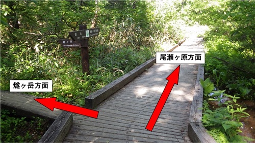 <燧ヶ岳と尾瀬ヶ原に行く道の分岐>