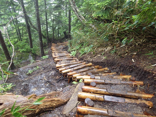 <見晴新道の新しい木道階段>