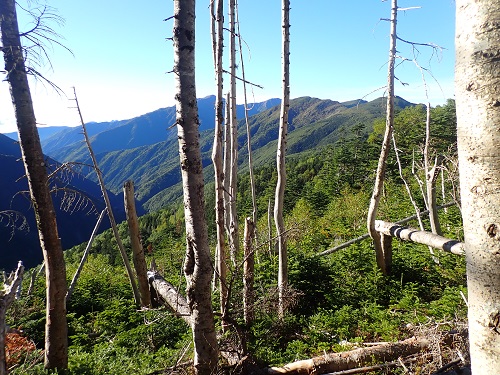 木々の間からは荒川岳や小河内岳を見ることができます。