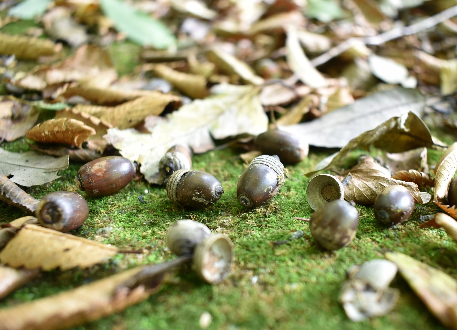 カサカサっと何か落ちてきたと思ったら、どんぐりです。足下には秋が落ちていました。