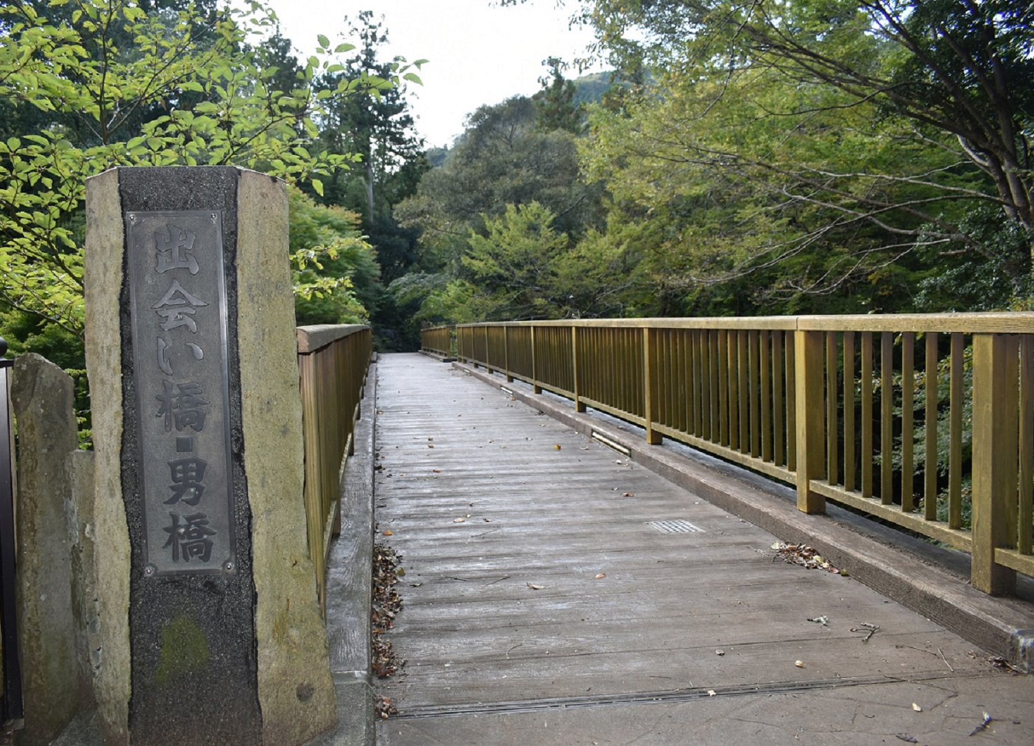 こちらは、猫越川(ねっこがわ)にかかる「女橋」と、本谷川にかかる「男橋」です。この場所はこの二つの川が合流し狩野川として流れ出す場所であり、男女が巡り会い新しい人生をスタートする「出会い橋」と呼ばれていて、二つの橋の出会う場所にはハートのモニュメントがあり写真スポットになっています。5月下旬から7月上旬頃には、たくさんのホタルが飛び交い幻想的で、四季を通して美しい場所です。