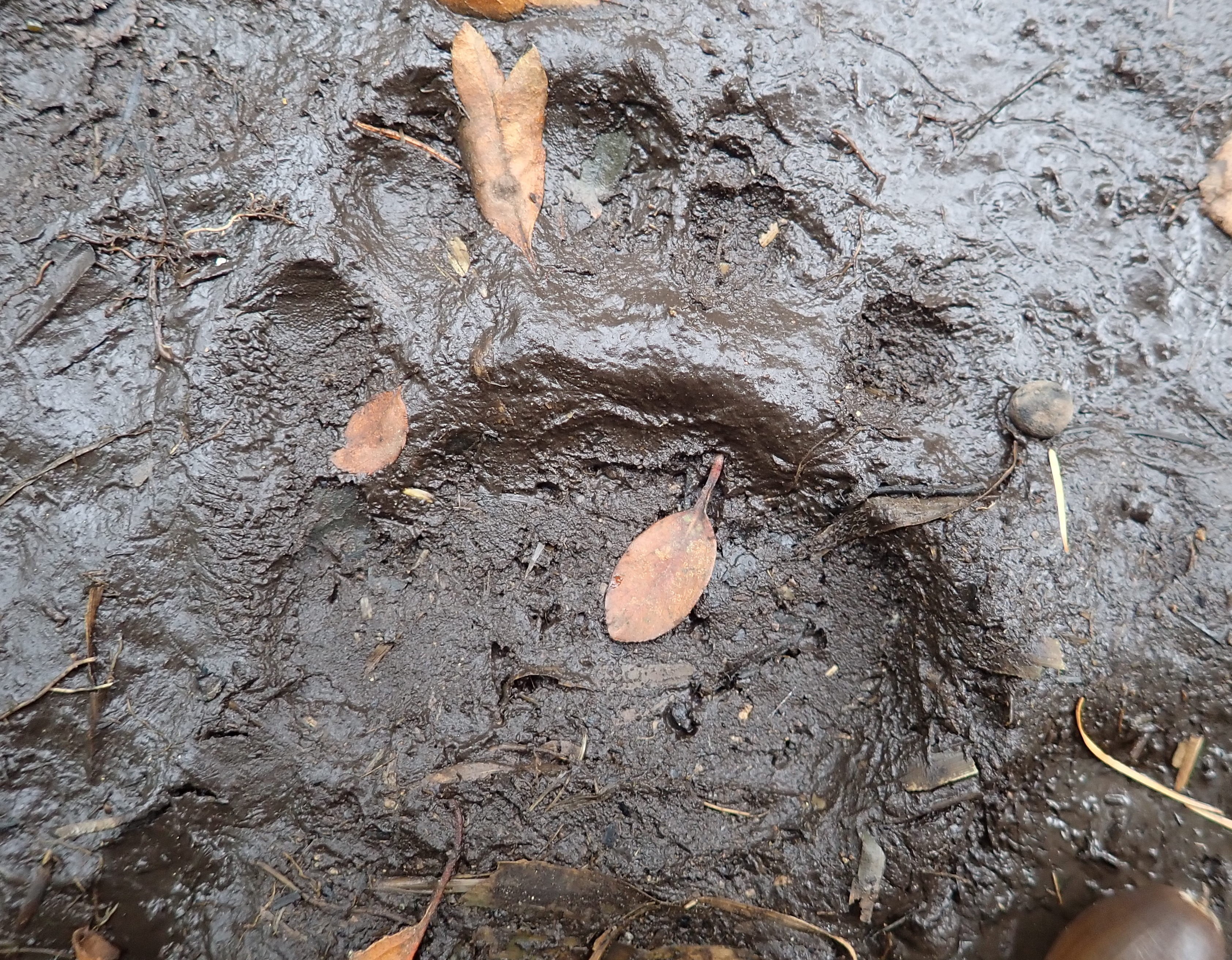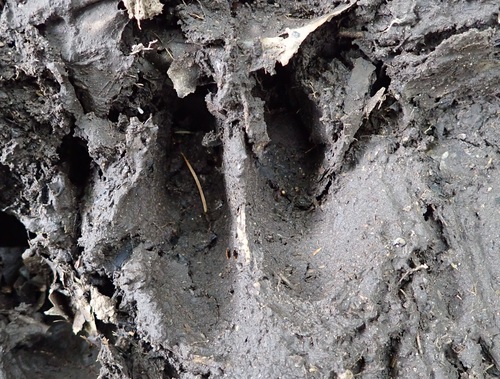 迂回路はぬかるんでいる場所が数箇所あり、歩きにくい歩道ではありますが、そのぬかるみには動物の痕跡がはっきり残っていることがあります。