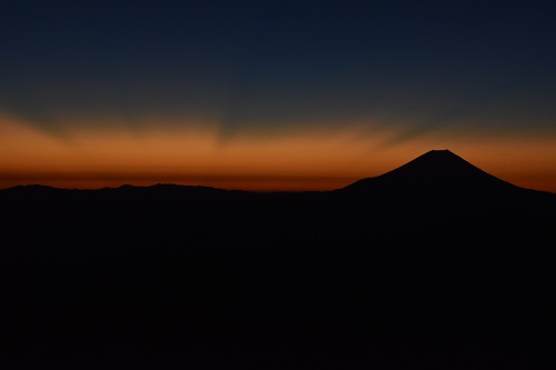 鳳凰三山は地蔵ヶ岳、観音岳、薬師岳から成る山で、地蔵ヶ岳が最も北に位置しています。写真は少し富士山に山が被っていますが、オベリスクに近づくと、富士山の裾と日の出を拝むことができます。
