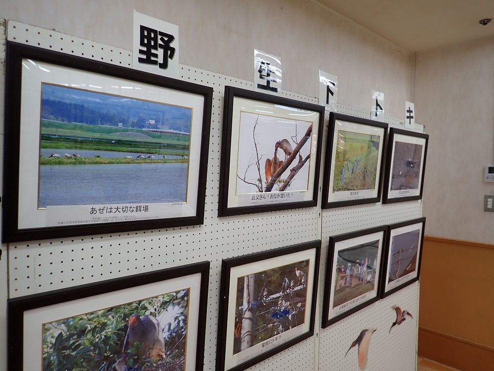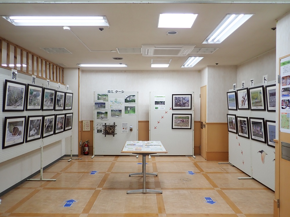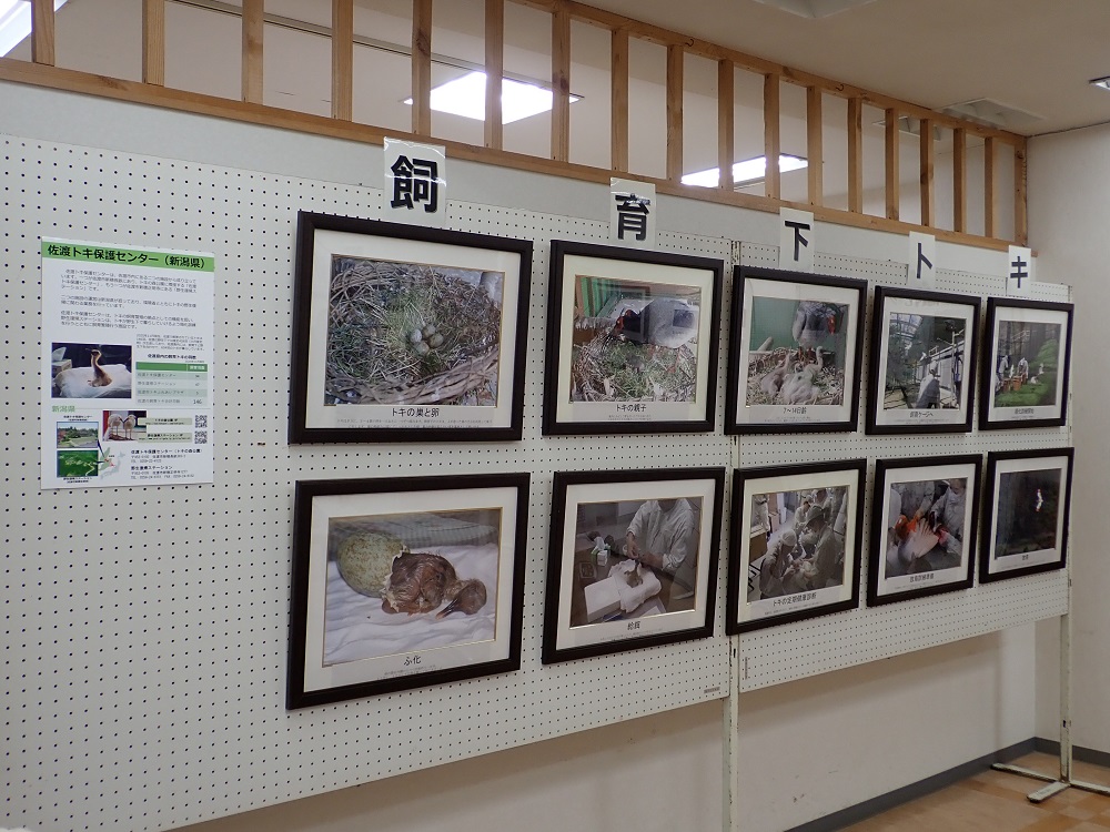 写真展では野生下・飼育下のトキの写真などを展示しています。