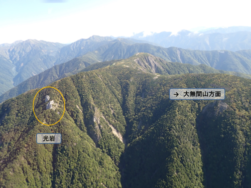 山頂を下った先にある『光岩』が太陽光で反射し、光って目立つことから光岳と呼ばれるようになったようです。その『光岩』がこちら!