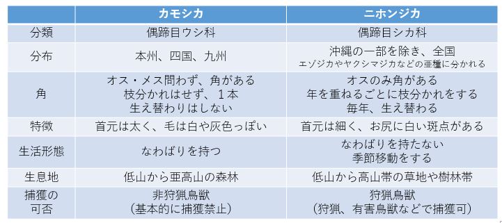 ¨え、カモシカはシカじゃないの?¨と思われた方もいらっしゃるかと思います。名前にシカとありますが、カモシカとニホンジカではなにが違うのでしょう。そこで!カモシカとニホンジカの違いをまとめてみました。