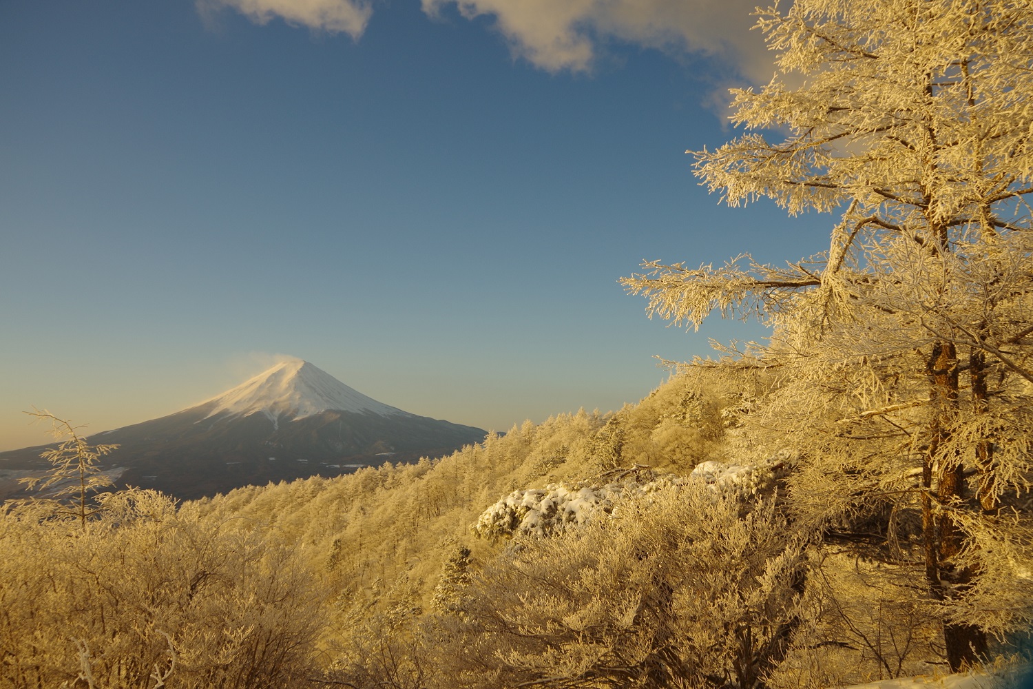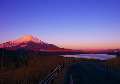 神奈川県との県境である三国峠から下ってきて視界が開けると広がるこの景色は、何度見ても「お~!」となる私の大好きな景色です。富士山と山中湖越しの南アルプスが一度に望めるとはなんとも贅沢ですよね。