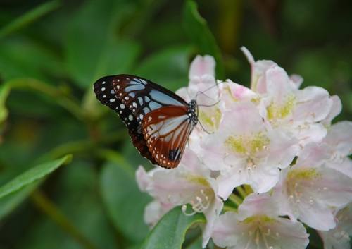こちらは夏の富士山御中道を巡視中の出会いの一コマです。(本当は構図違いの別の写真を提出する予定でしたが、間違ってこちらを出してしまいました。少しピントがあっていないのはご愛敬ということでお許しください・・・。)すぐ近くで忙しそうに蜜を吸っているアサギマダラと満開のハクサンシャクナゲに見入ってしまいました。どちらも富士山で会うのが毎年楽しみです。