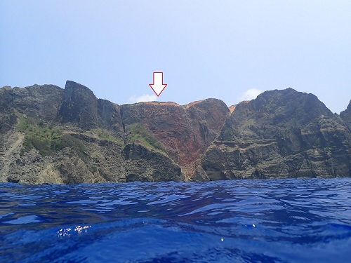 ▲海上から見ると赤い岩肌の部分がハート型に見えることが名前の由来になっています。