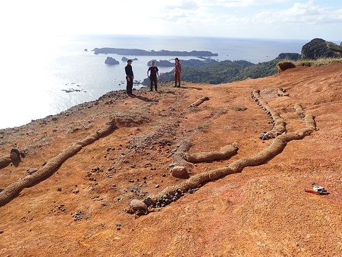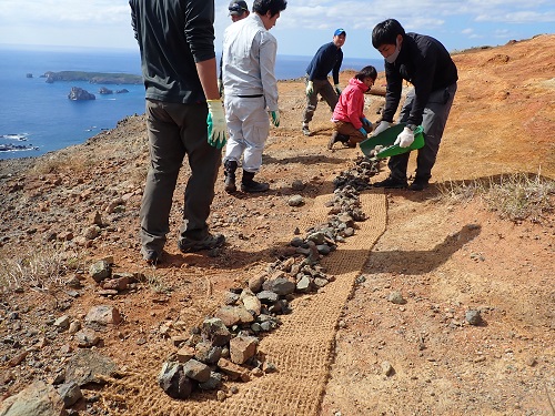 先日、父島のトレッキングスポットとして有名なハートロックで、近自然工法による整備を行いました。