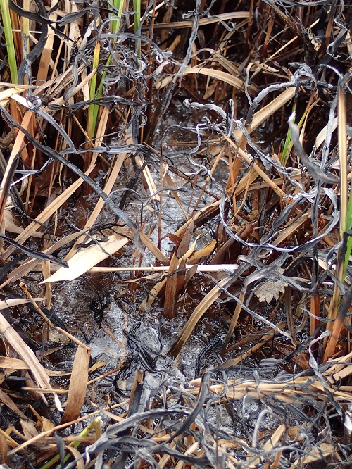 この枯草に火を付けるという作業が、なぜ湿原の維持につながるのか不思議に思いませんか?むしろ植物を全部燃やしてしまって、湿原性植物にも害があるのではと、考えてしまいます。しかし、今回面白い状態を確認することが出来ました。