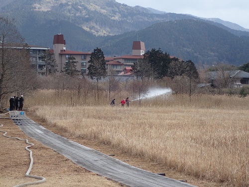 ただ火をつけるだけの簡単な作業ではなく、その日の風向きを考えながら、あるいは燃えてはいけないところに火が付かないように十分気を付けながら、箱根湿生花園の職員の皆さんが真剣に作業に取り組んでいました。