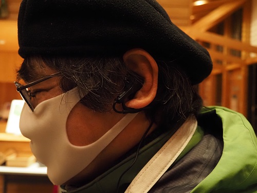 今回はイヤフォンガイドを用いたレクチャーが試みられました。那須平成の森のインタープリター(自然と人との橋渡し役のこと)による星空のお話が、送信機を通して参加者が装着するイヤフォンに届きます。