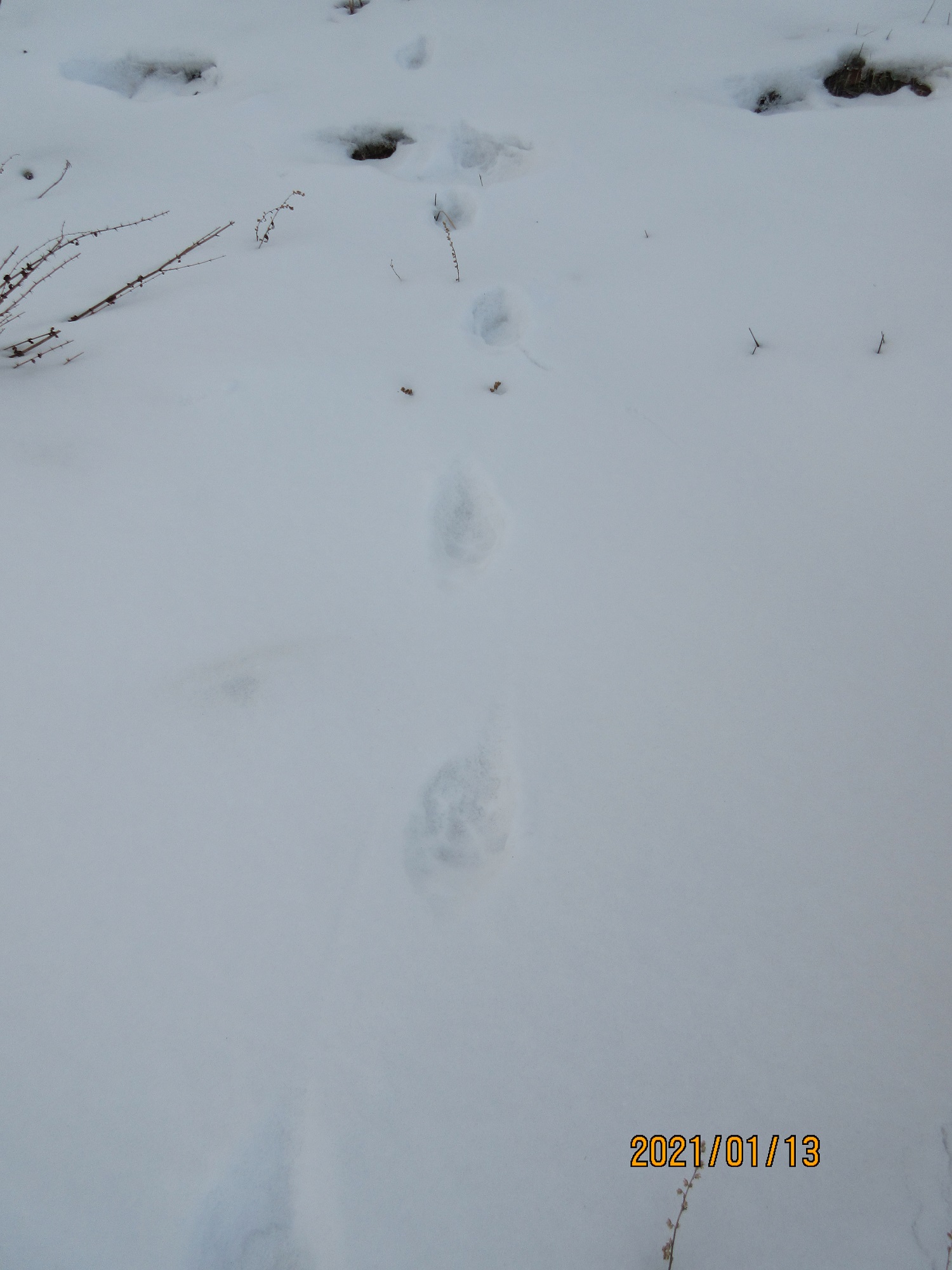 また、点々と続く足跡、どちらの方向に向かっているのか?