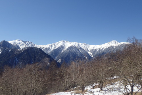 白峰三山も真っ白になり、ようやく冬らしくなってきました。真っ白な白峰三山は雄大で美しく、見ていてうっとりします。冬の標高約1,800メートルは下界に比べて寒いですが、澄んだ空気の中で、美しい景色を堪能することができます。
