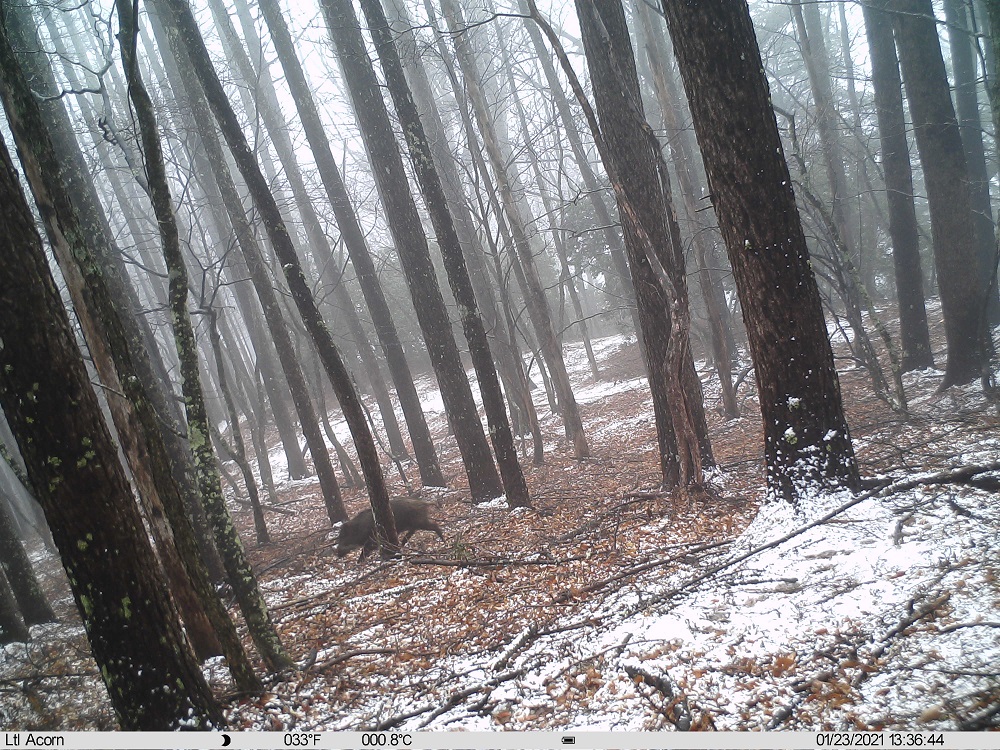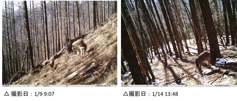 前回設置したカメラにはニホンジカ以外の動物は撮影されていませんでしたが、今回はイノシシが撮影されていました!