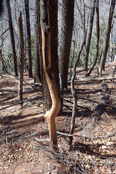 足跡やフンだけでなく、樹皮剥ぎも目立ちました。