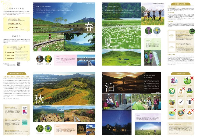 写真は、季節ごとの魅力をお伝えできるようにし、地図は、公園区域やコースのグレードなどを色分けしてとても使いやすいパンフレットになっています。