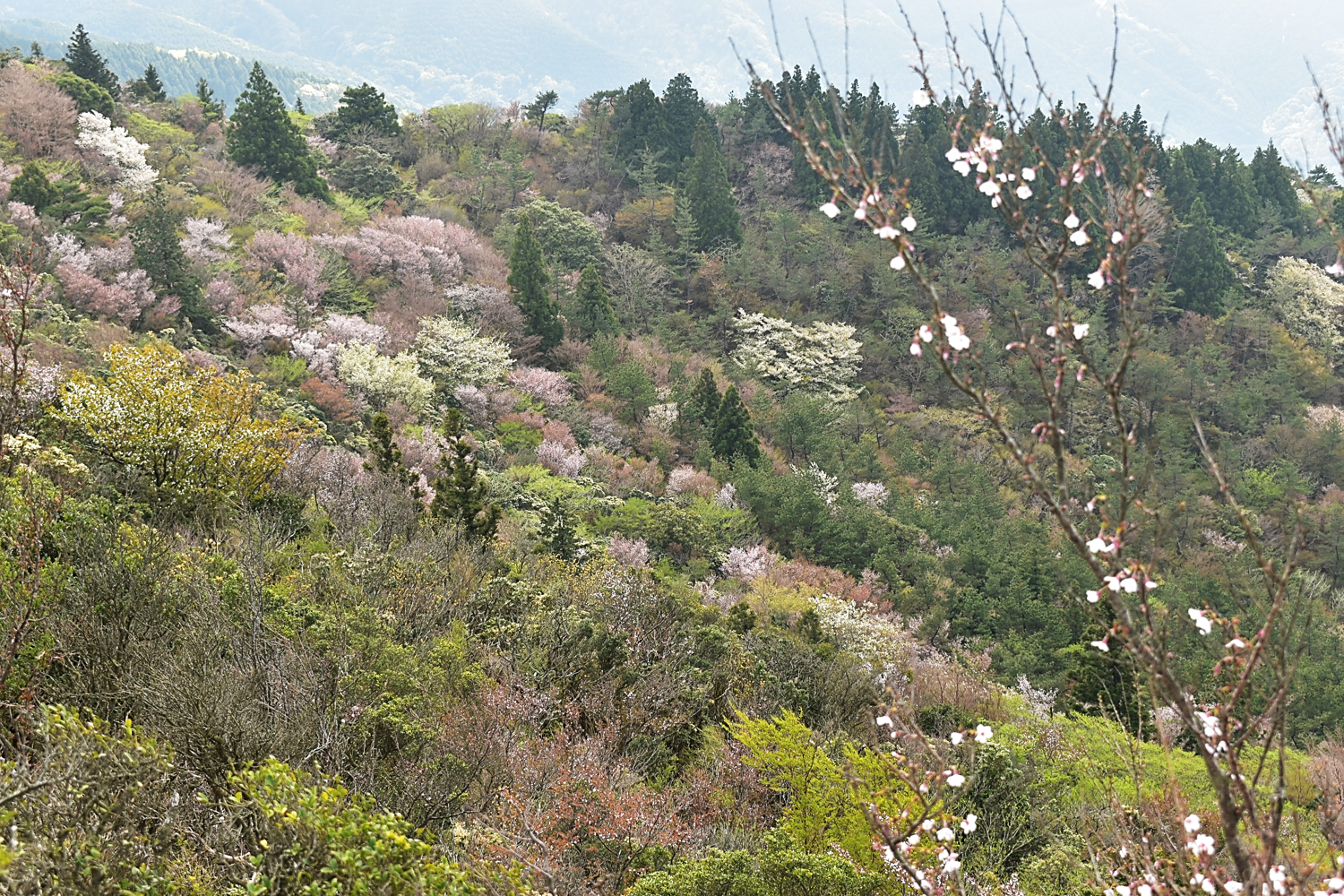 そして、山肌はまだパッチワークになっていました。この時期限定の色合いなので毎年楽しみにしていますが、少しずつずれて咲く桜が今年は一気に開花したのか、いつにも増してどの山も見事なパッチワークでした。これから初夏に向けて山がさらに鮮やかに彩ります。歩道脇の野草も咲き始めていて季節の移り変わりを実感した巡視になりました。