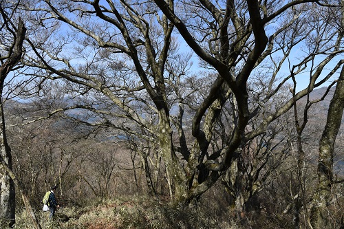 道中、アカガシとブナの林の中を、歩くことが出来ます。