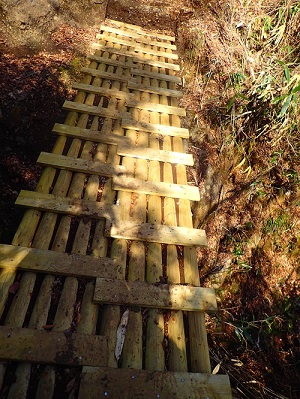 令和元年秋の台風被害で起きた崩落部の補修が完了し、【湖尻峠~山伏峠】間が1年半ぶりに歩けるようになりました。そこで3月下旬、歩道管理の神奈川県自然環境保全センターの方と一緒に、合同巡視を実施しました。